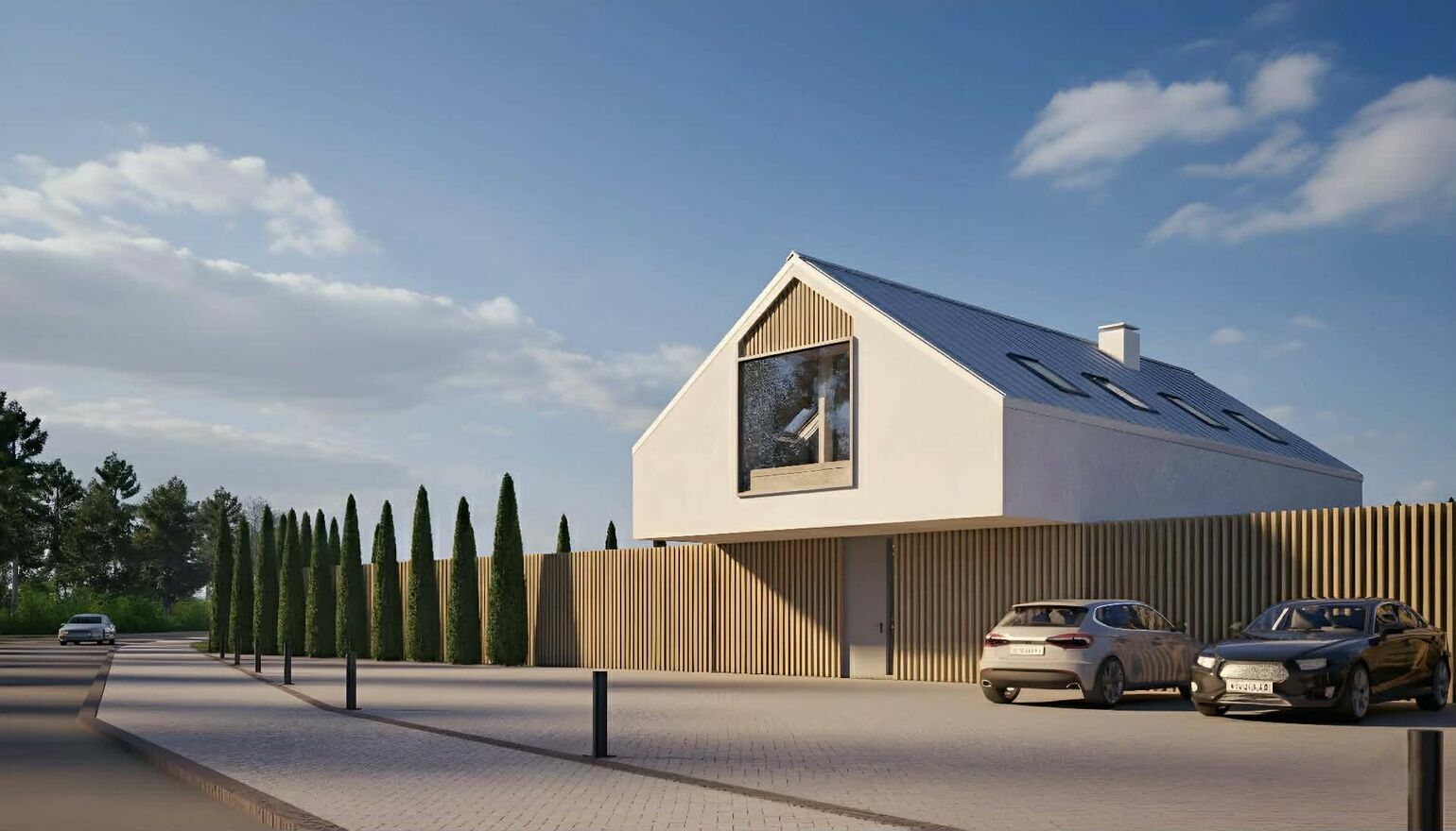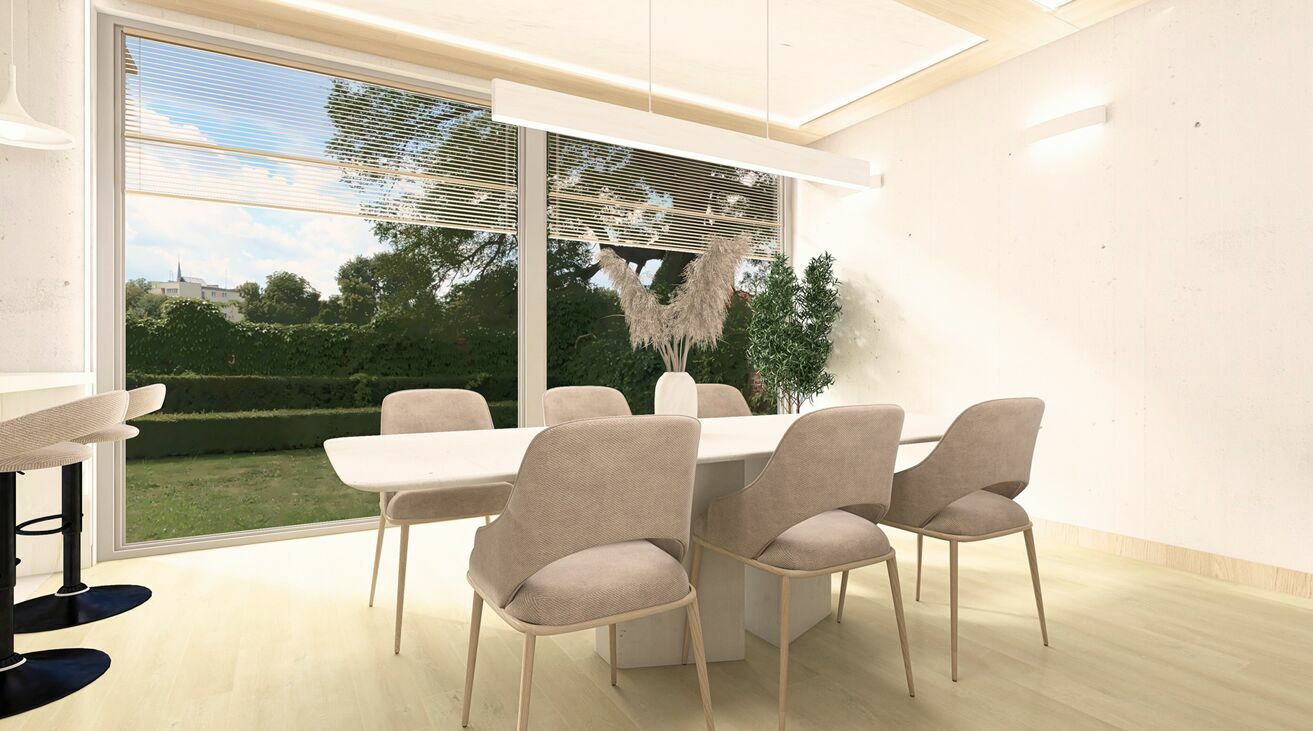 Budynek został starannie zaprojektowany z myślą o wygodnym codziennym życiu w połączeniu z eleganckim, spójnym, oraz nowoczesnym wyglądem. Jest to projekt indywidualny, dostosowany do wysokich wymagań funkcjonalnych zapewniający optymalne doświetlenie wnętrz oraz wysoką estetykę bryły.