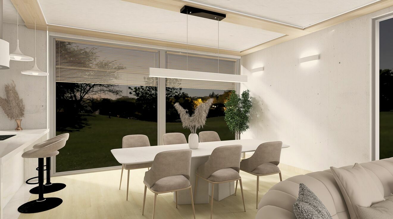 Co ważne projekt z panoramicznymi oknami po obu stronach salonu plus opcja atrialnego sufitu otwierającego przestrzeń nad salonem to propozycja dla osób, które cenią sobie oprócz wygody, także rozwiązania wykraczajce poza standardy.